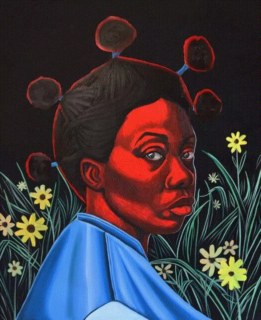 Known for his bold, unmistakable style, Makama’s work carries the confidence of someone who has long been immersed in the professional world of art. Creating from his home studio in Abuja, Nigeria, he brings his subjects to life with vivid green skin, playful polka dots, and striking features that exude both beauty and strength. Remarkably, despite only focusing on his craft for five years full-time, his artistry feels both mature and assured.